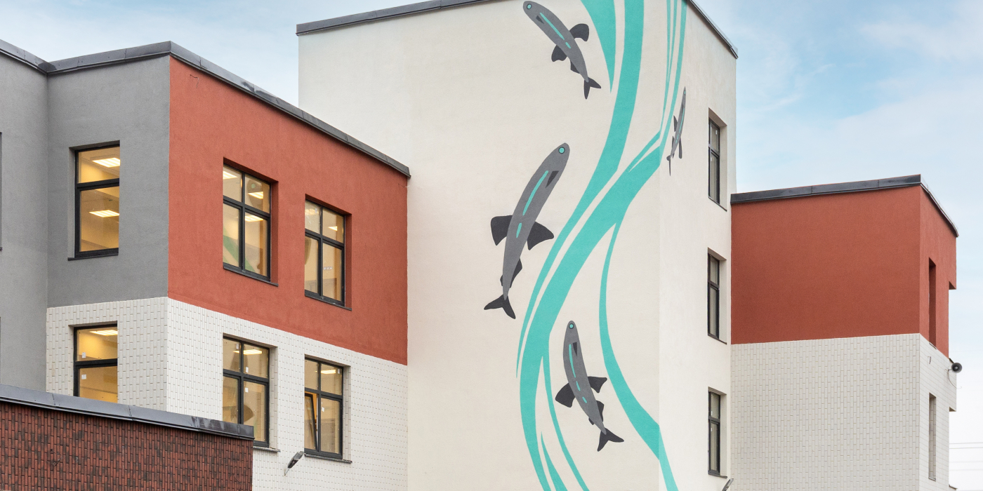 Группа ЦДС ввела в эксплуатацию детский сад, фасады которого украшены рисунками с символом Ленинградской области — корюшкой. Дошкольное учреждение сможет принять 325 воспитанников в возрасте от одного года до семи лет. Для них откроются 14 групп, среди которых четыре — ясельные.